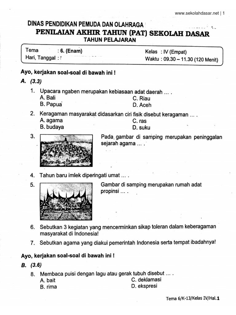 Soal Ukk Kelas 4 Tema 6 : Lengkap - Contoh Soal Ukk Tematik Untuk Kelas 4 Tema 7 ... - Halo sahabat ahzaa, pada post kali ini saya akan berbagi soal untuk kegiatan ulangan harian di kelas 2 (dua) sd tema 1 subtema 1, yaitu hi.. .soal dan kunci jawaban kelas 4 tema 6. Soal tematik kelas 4 tema 6 sub tema 1. Awal bulan ini tentu awal yang seharusnya penuh dengan yang namnya ke bahagiaan tentunya. Soal tema 4 kelas 6. Soal tema 6 kelas 4 indahnya negeriku.
