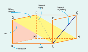 Berikut akan kami berikan rincian jumlahnya untuk kalian semua Perhatikan ruas garis bg dan cf pada gambar di atas. Ada empat diagonal ruang pada kubus, yaitu ruas garis $ag$, $hb$, $ce$, dan $df. Bangun ruang (geometri) standar kompetensi : Untuk lebih jelas dapat memperhatikan gambar berikut.